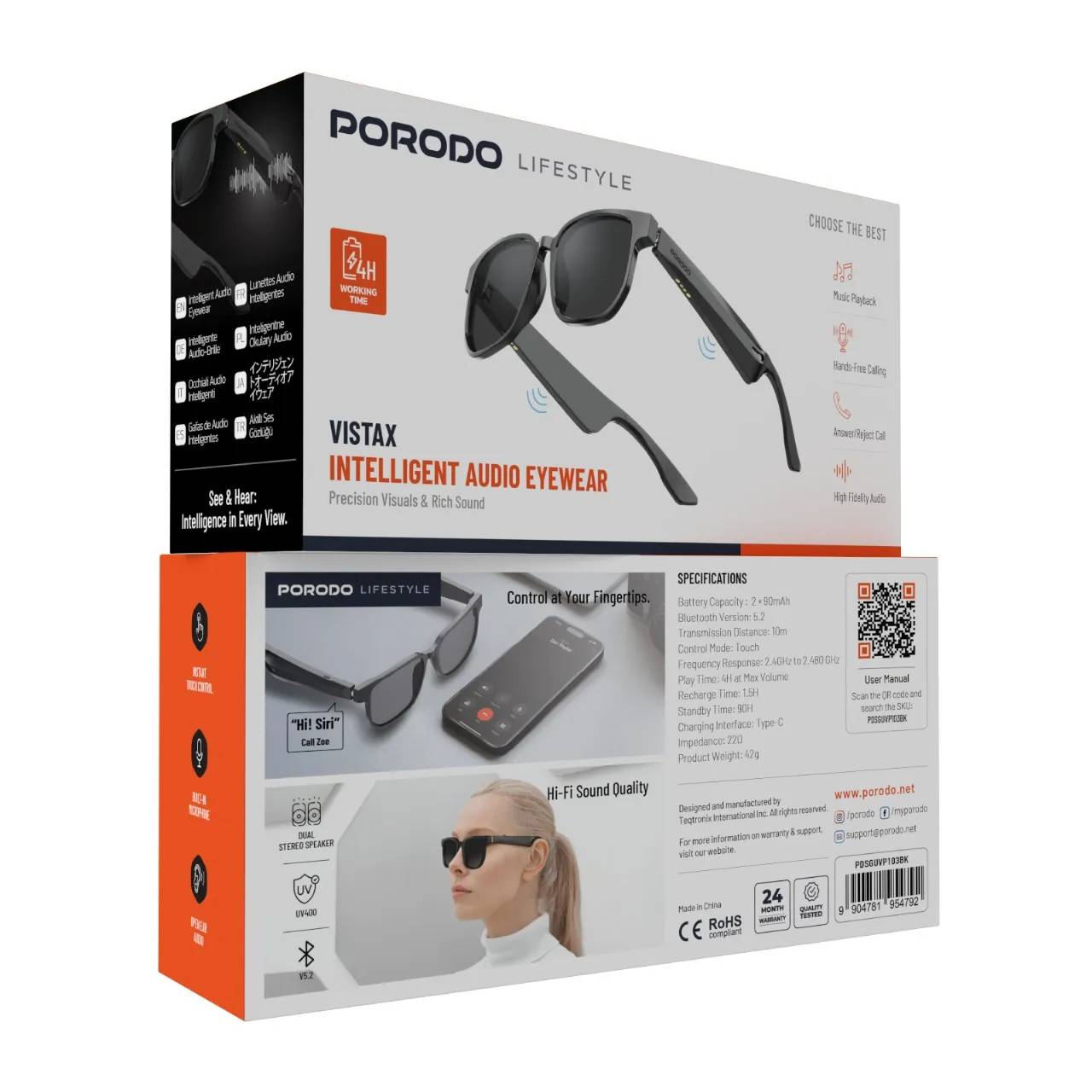 عینک هوشمند صوتی Porodo Lifestyle Vistax ترکیبی ایدهآل از مد، کارایی و فناوری صوتی پیشرفته است. این عینکهای صوتی که به رنگ مشکی هستند، صدای بسیار واضحی را از طریق بلندگوهای استریوی دوگانه خود ارائه میدهند، بنابراین یک تجربه صوتی کامل و پر جنب و جوش ارائه میشود. آنها همچنین دارای محافظت UV 400 هستند، به این معنی که نه تنها اشعه خورشید را مسدود میکنند، بلکه شما را متصل نگه میدارند. هر یک از باتریهای 90 میلیآمپر ساعتی به مدت 4 ساعت پخش مداوم با حداکثر صدا دوام میآورند و 90 ساعت در حالت آماده به کار دوام میآورند، بنابراین عمر باتری با این عینکها مشکلی ندارد. پورت شارژ مغناطیسی، شارژ را تنها در 1.5 ساعت بسیار آسان میکند. میکروفون یکپارچه، همراه با پخش موسیقی و ویژگیهای پاسخ/رد تماس، همگی با یک فشار دکمه انجام میشوند. عینکهای Porodo Lifestyle Vistax به طور همزمان تصاویر خیرهکننده و تجربه صدای عالی را ارائه میدهند و آنها را در یک طراحی زیبا و خلاقانه گنجاندهاند، چه در حال لذت بردن از موسیقی باشید و چه در حال برقراری تماس.