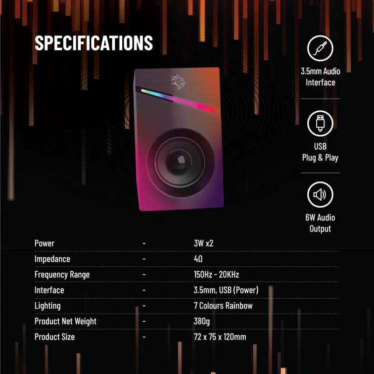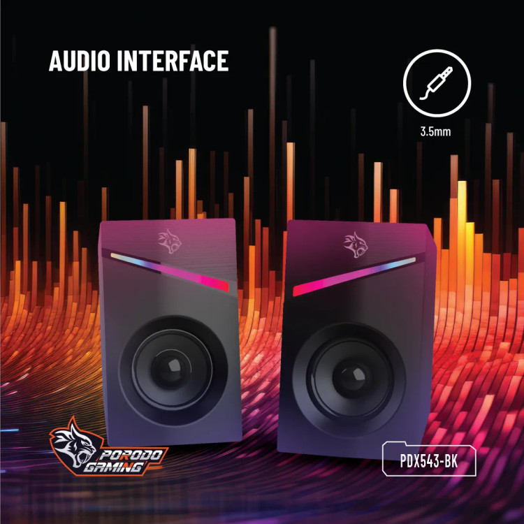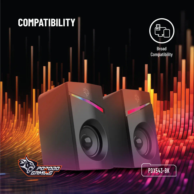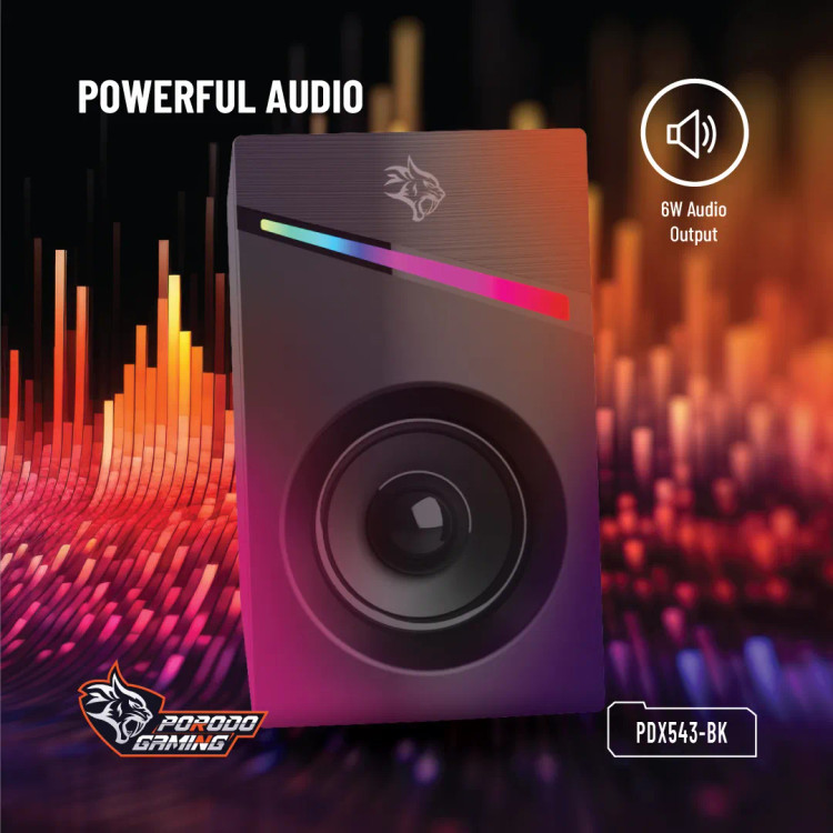با بلندگوهای گیمینگ استریو گیمینگ Porodo از صدای غنی و ممتاز لذت ببرید. از پاسخ فرکانسی 150 هرتز تا 20 کیلوهرتز برای یک صحنه صوتی متعادل لذت ببرید و بازی ها، موسیقی و فیلم های خود را زنده کنید. منبع تغذیه DC 5V/1A برای خروجی صدای قدرتمند و پویا تامین می شود. این بلندگوها را از طریق رابط های صوتی کمکی 3.5 میلی متری و USB به تنظیمات بازی خود وصل کنید. با دکمه تعبیه شده تنظیم صدا، تنظیم تنظیمات صدا برای داشتن صدایی عالی در هر شرایطی آسان و راحت است. با جلوه های 7 رنگ نور و رنگین کمان اسپیکرهای بازی Porodo بیشتر غوطه ور شوید. این نورها را جذاب میکند و افراد را عمیقاً به بازی خود و سایر مجموعههای جانبی بازی میآورد.