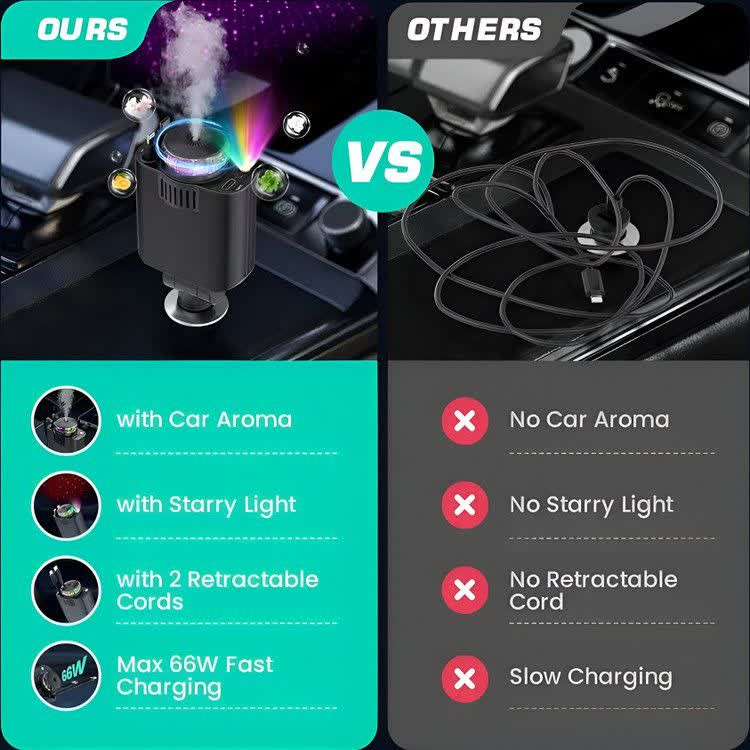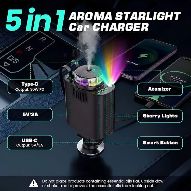 شارژر فندکی خودرو W&O مدل Starlight پنج کاره با رایحه افشانی و نورپردازی