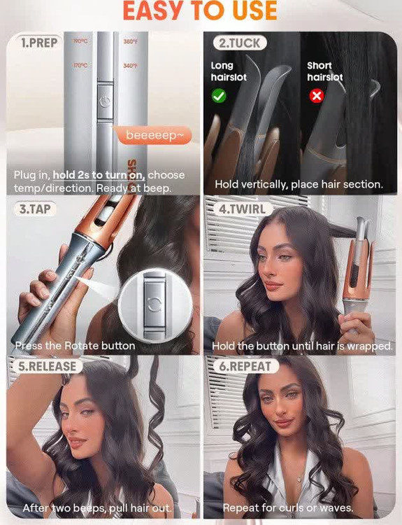 - طراحی هوشمند و راحت: One-Touch Instant Curler با طراحی منحصر به فرد خود، به کاربران این امکان را میدهد که تنها با فشردن یک دکمه، فرهایی زیبا و طبیعی بسازند. دستگاه به طور خودکار موها را به دور لوله فر میچرخاند و به آنها شکل میدهد.