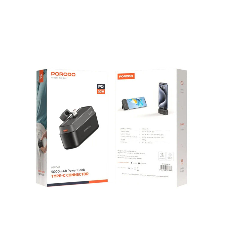 پاور بانک جیبی 5000 برند Porodo مدلPD-PBFCH048-BK
