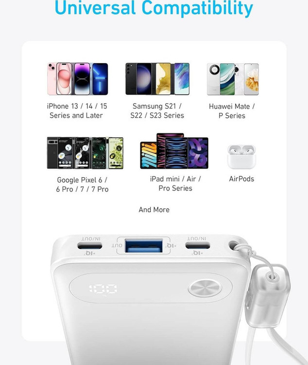 پاوربانک انکر مدل A1257 ظرفیت ۱۰۰۰۰ میلی آمپر ساعت فست شارژ