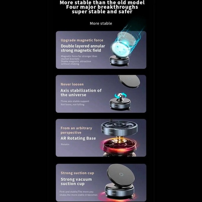 این هولدر با فن آوری مکش پیشرفته و خیلی خیلی قوی که داره با ایجاد خلأ باعث چسبندگی بسیار ایمن و پایدار میشه و مانع از لرزش و افتادن گوشی شما میشه