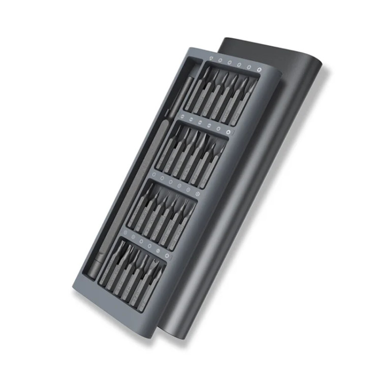 پیچ گوشتی 24 عددی شیائومی مدل MJJXLSD002QW، شامل 24 سری مختلف از 10 نوع متفاوت است که همراه با دسته ای از جنس آلیاژ آلومینیوم در یک جعبه زیبا به بازار ارائه می شود. تنوع بالای سری ها، پاسخگوی تمامی نیازهای روزانه شما برای تعمیرات وسایلی همانند ساعت، رادیو، دوربین، لپ تاپ، گوشی، پهباد و ... می باشد. جنس دسته به گونه ای است که در برابر زنگ زدن مقاوم بوده و طراحی آن، راحتی استفاده از پیچ گوشتی را تضمین می نماید. ابعاد کوچک جعبه محصول به شما این امکان را می دهد تا بتوانید آن را در کیفتان جا داده و همواره به همراه داشته باشید.